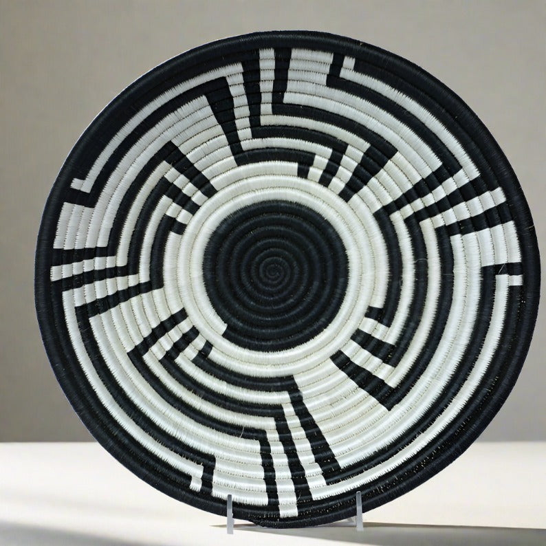 Black & White African Wall Basket, Rwanda baskets, African Woven basket, Black and White