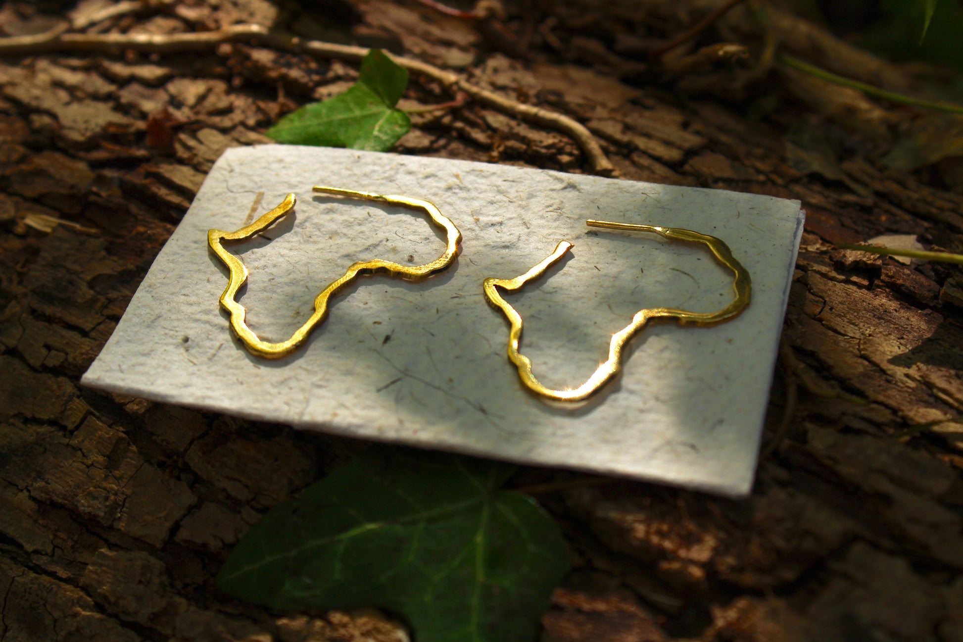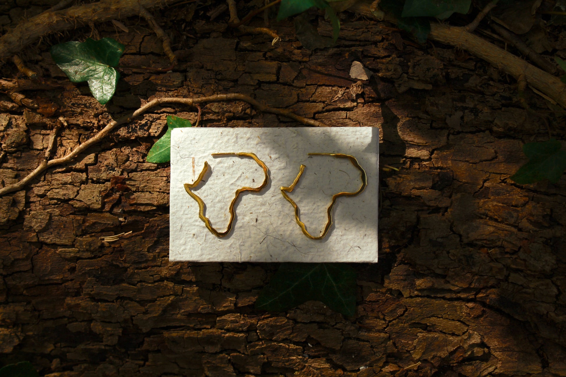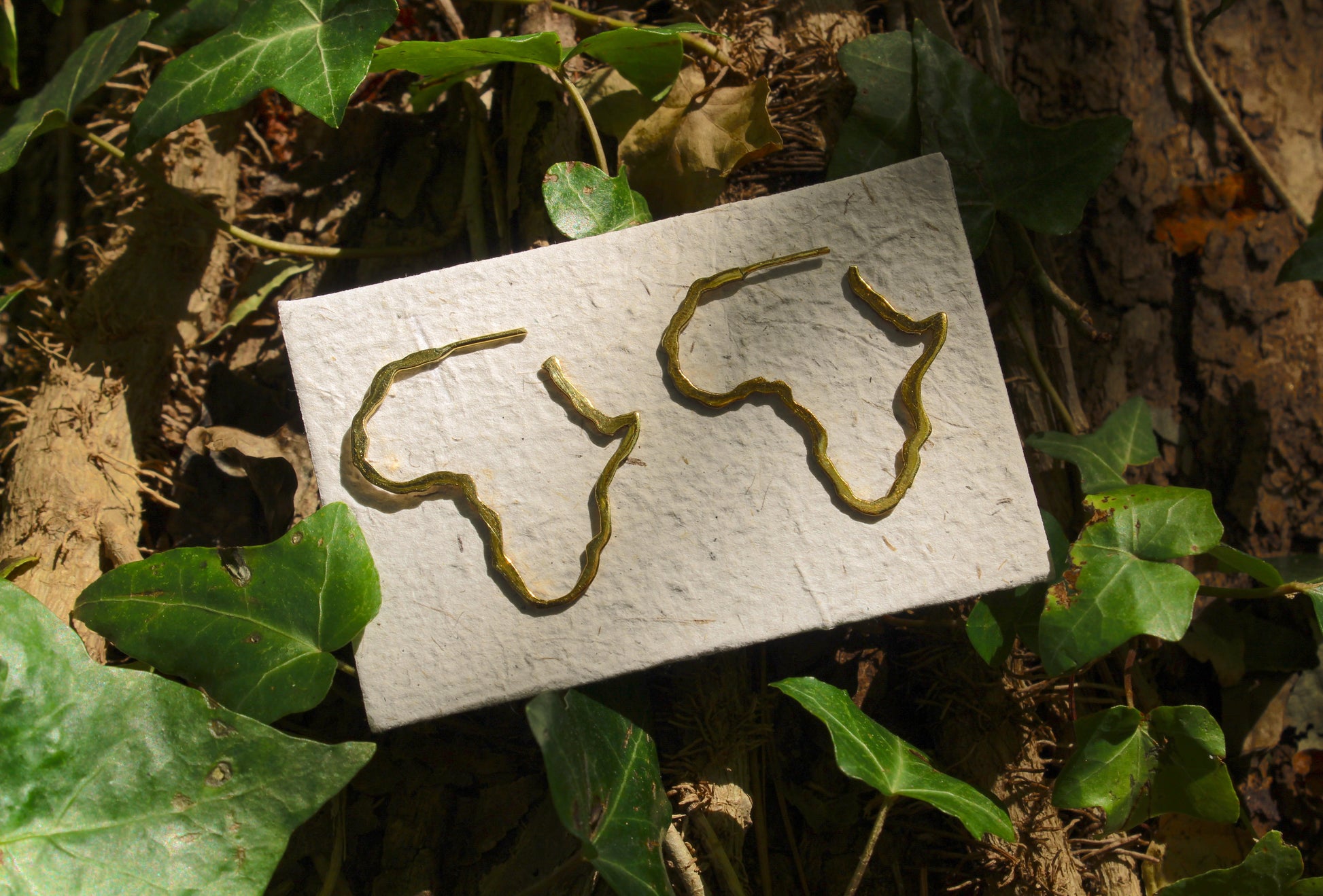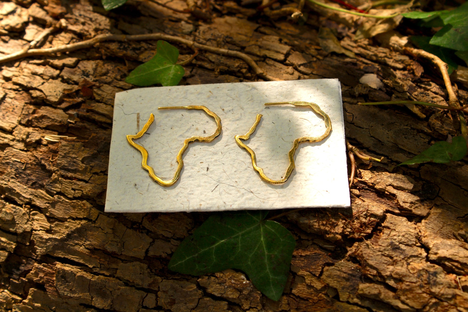 Talented Kenyan artisans handcraft these stylish earrings by shaping the brass into a outline of the African continent. Finished with a post and push-back closure.