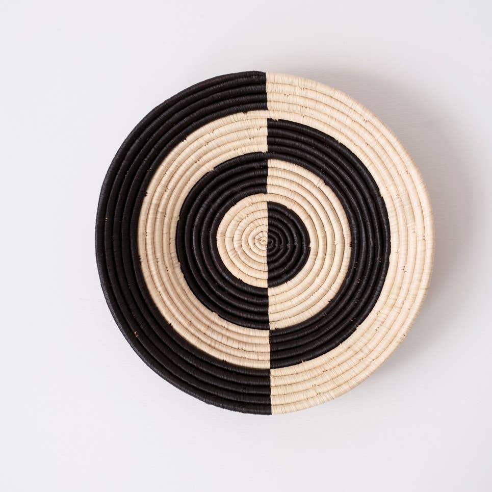 Make a wall statement with a stunning collection of baskets on display or elevate your tablescape with a unique centerpiece. Handcrafted by women artisans living in Central Uganda who are part of a cooperative that provides employment and training for disadvantaged or marginalized communities - particularly widows, the disabled and those living with HIV/AIDS. * Made from all natural, sustainably sourced raffia and banana fibers * All synthetic AZO free dyes * Hanging loop on back allows basket to be wall decor in addition to tabletop use * Weavers hand make each basket from home while tending to other household duties. Baskets can take days to weeks to complete with artists weaving 3 or so hours per day while balancing other responsibilities.