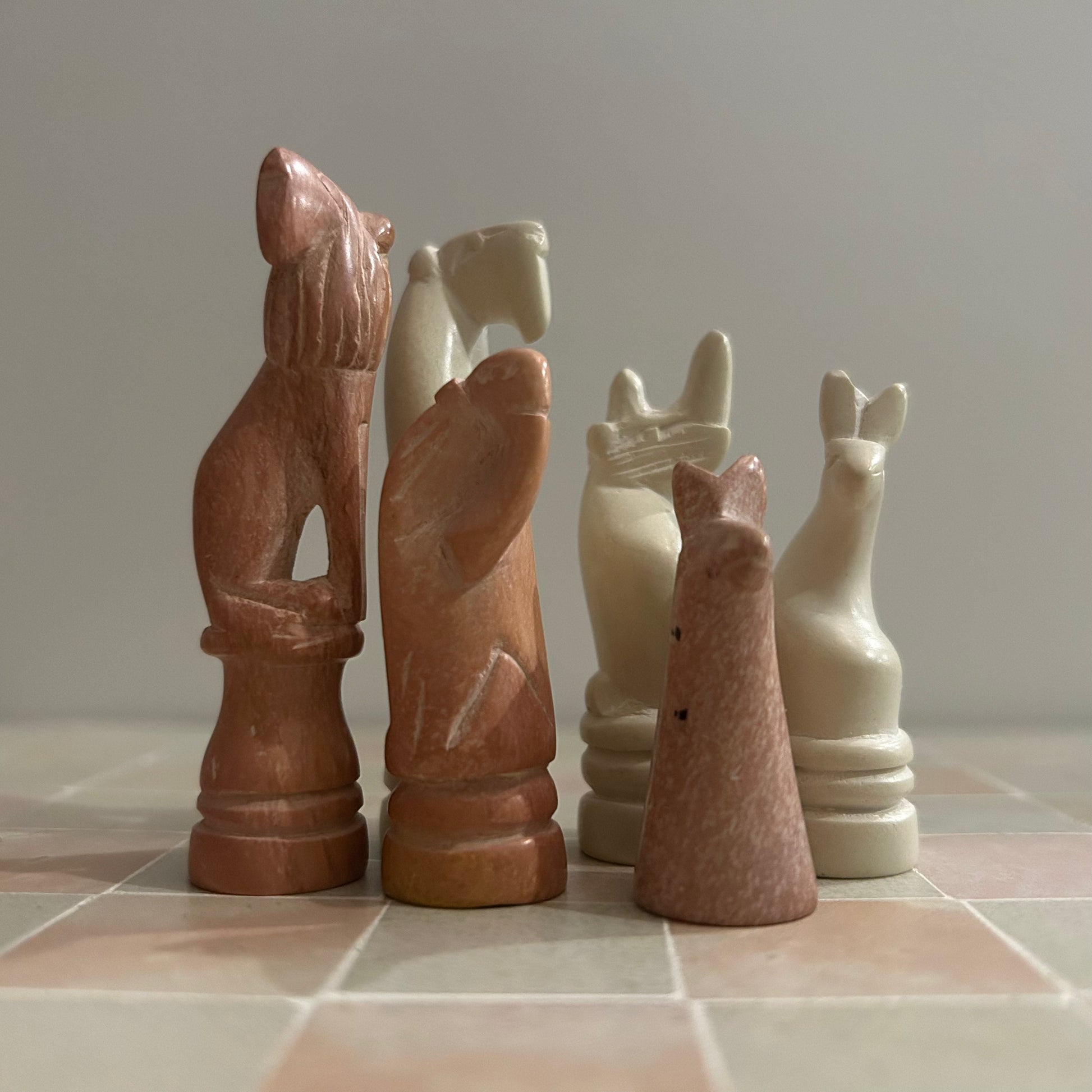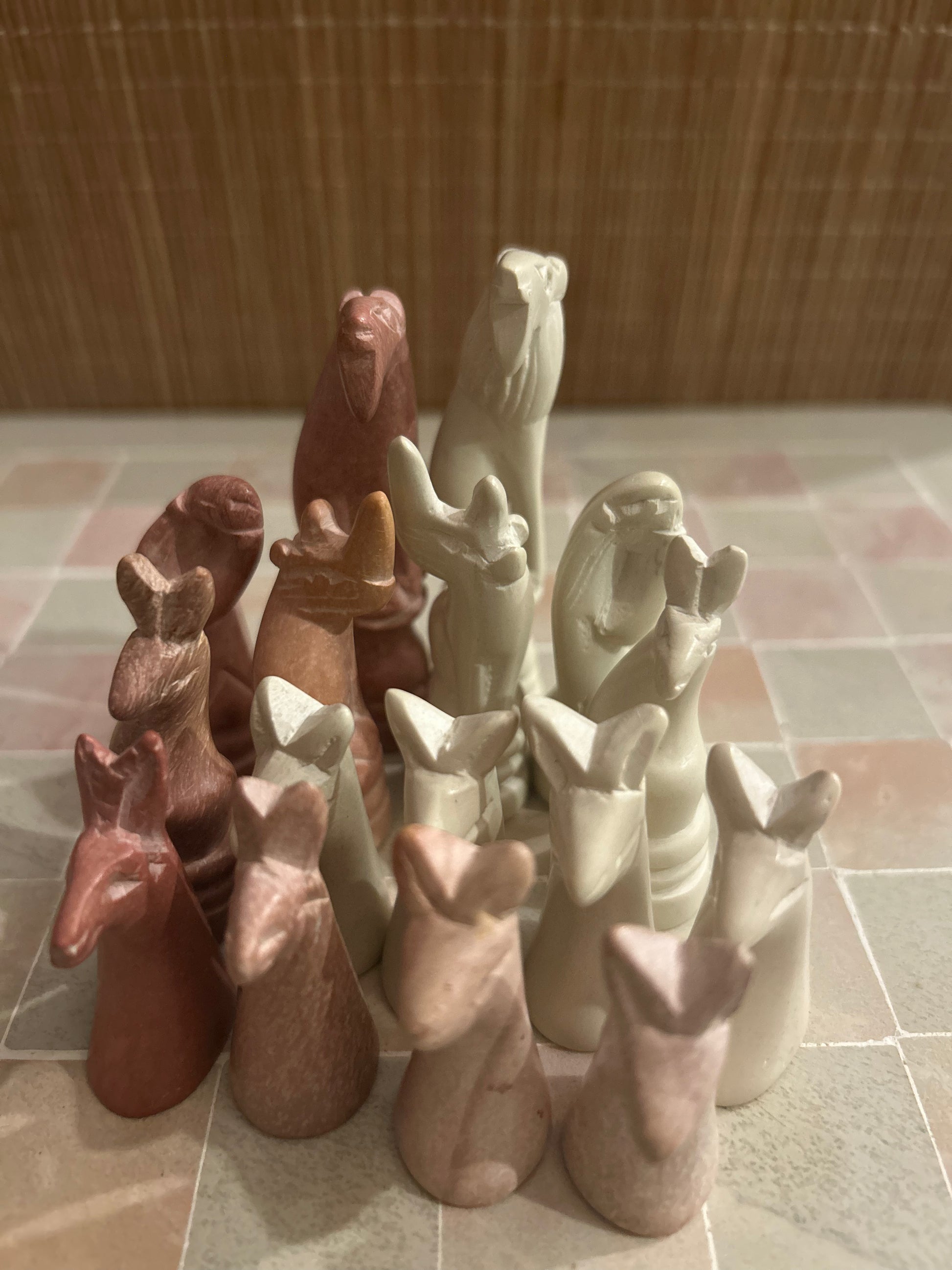 Hand-carved Soapstone African Animals Big 5 Chess Set