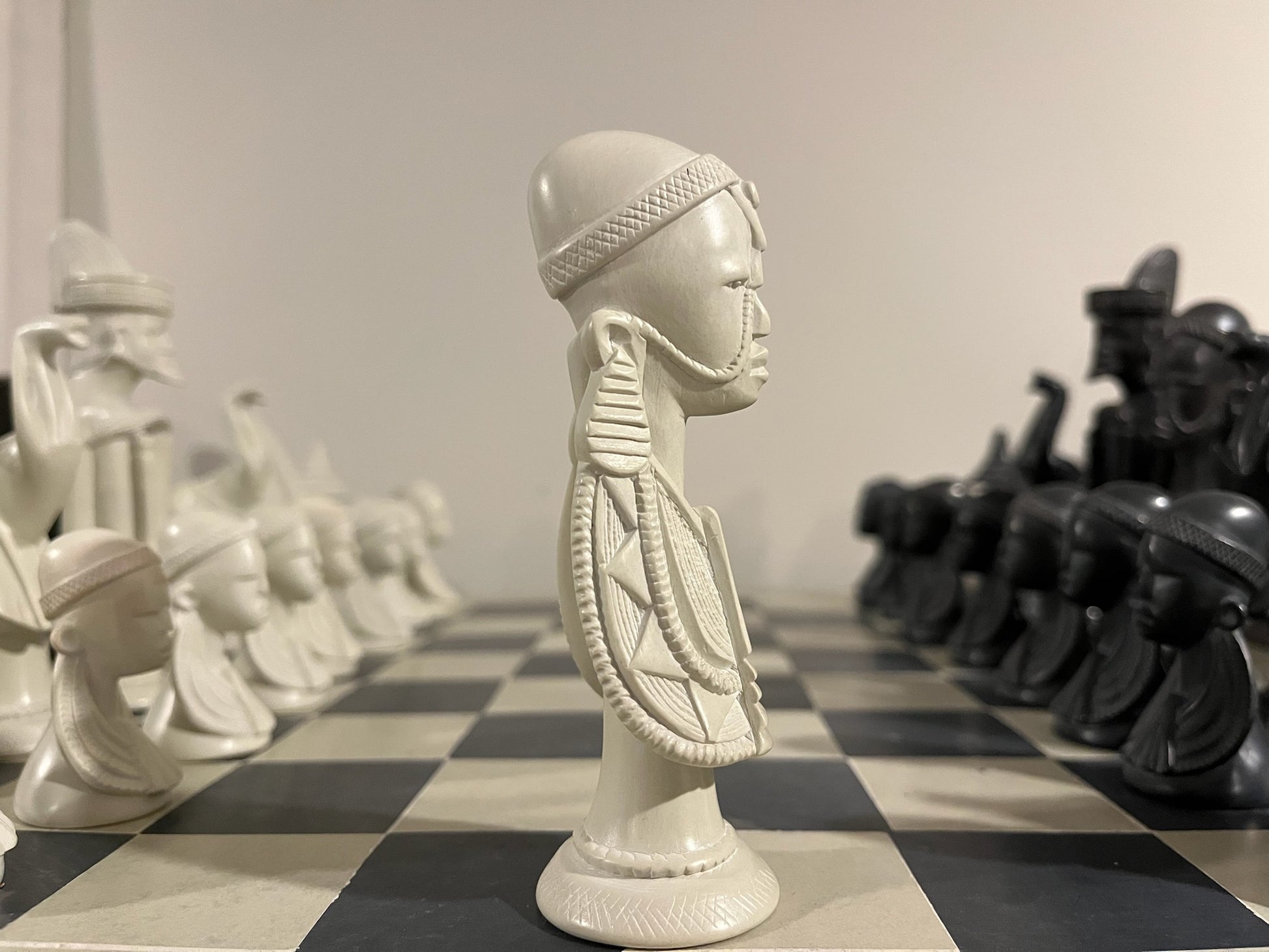 Hand-carved Soapstone African Warriors Chess Set
