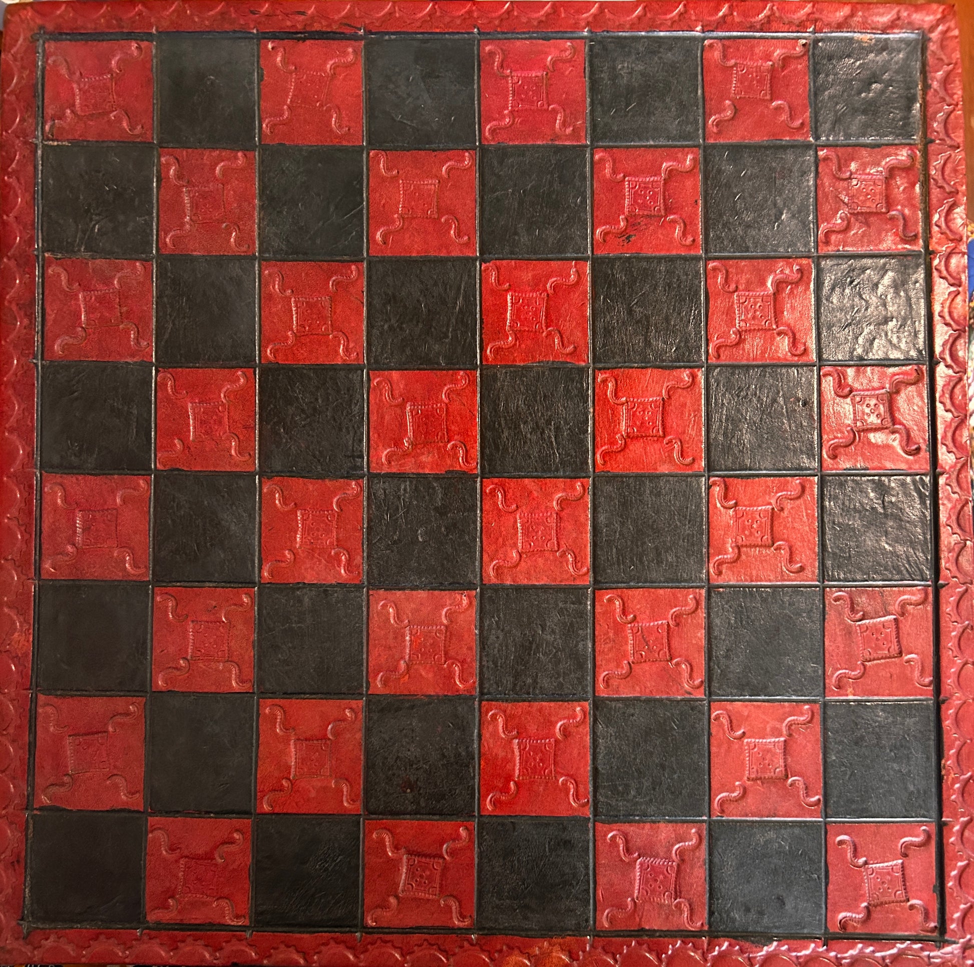 Handcarved by Sénégalese Laobé artisans, our original African chess set features handcarved pieces made of teak wood atop a stamped leather board.