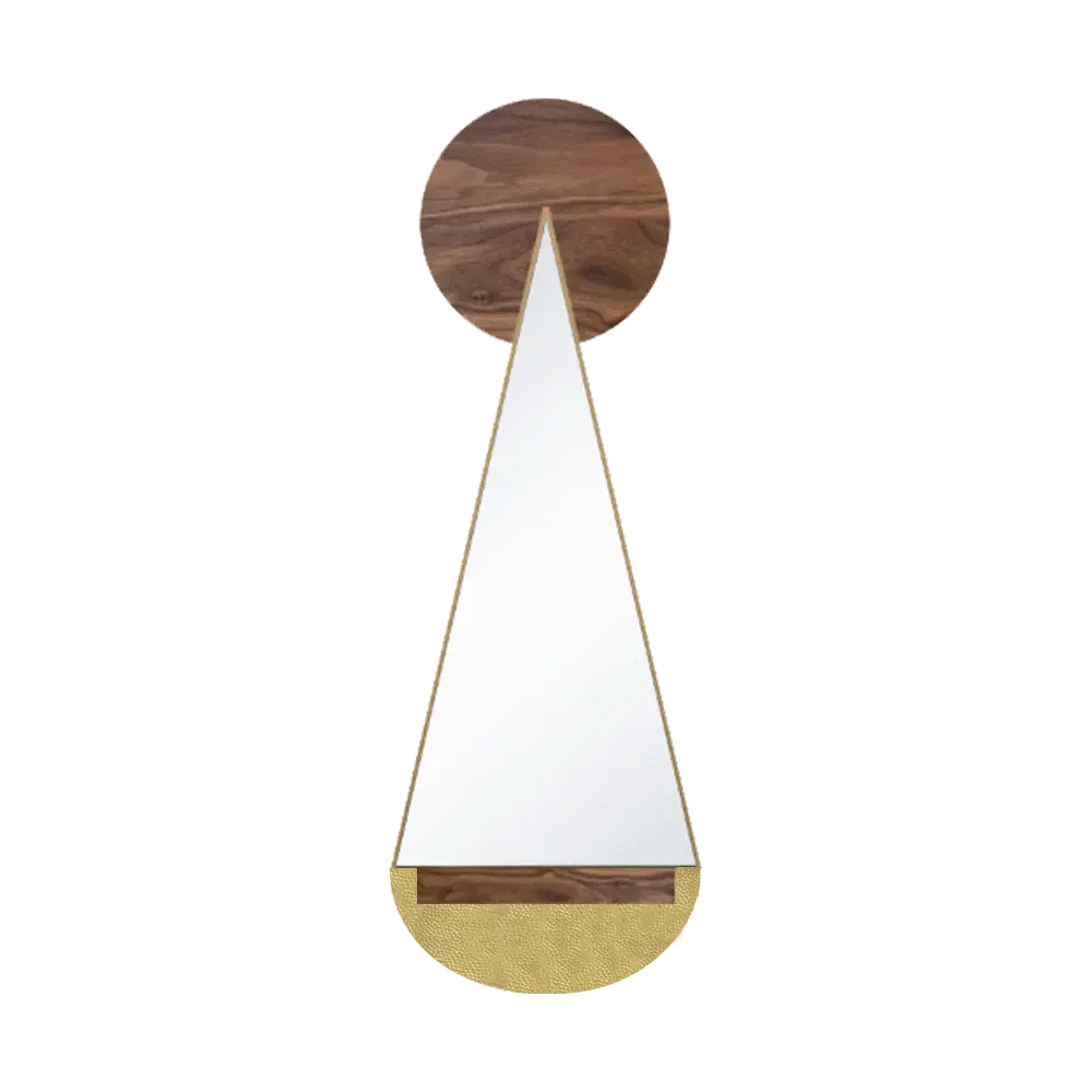 The Izil Triangle Mirror provides a unique accent to your space with its triangular shape and hand hammered details.