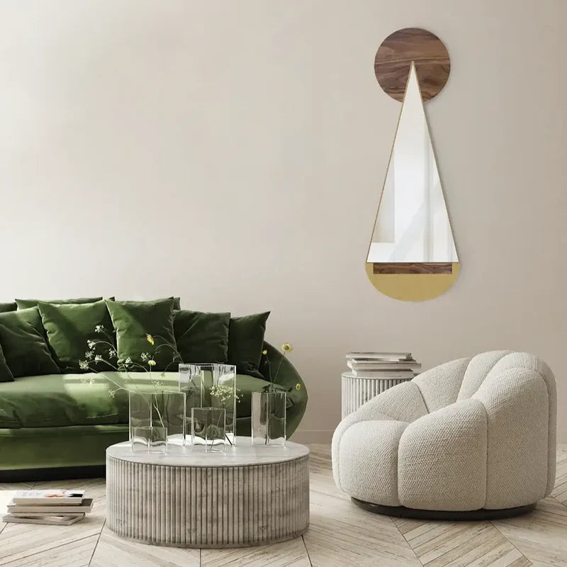Wood accents add a classic, timeless touch to the design, creating an elegant look. Its unique shape allows you to place it virtually anywhere, bringing a touch of style and sophistication to hallways, entryways and bathrooms.