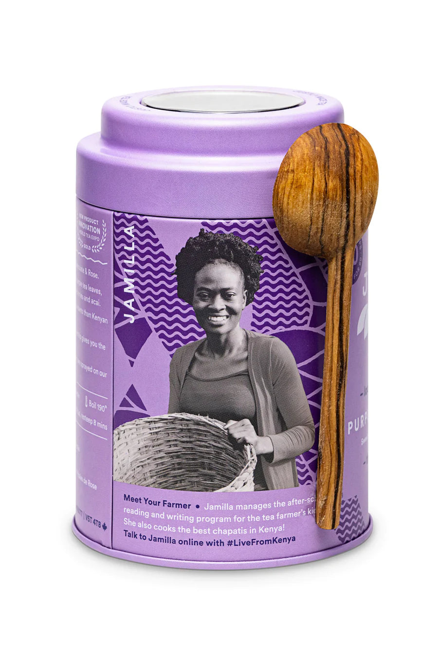 A cup of Purple Chocolate is a heavenly, chocola-tea experience. Antioxidant-rich cacao and purple tea offer a healthy choice to satisfy your sweet tooth, without any indulgence. Grown organically, these tea leaves are naturally purple because they contain anthocyanins, the same super antioxidants found in other purple plants like blueberries and pomegranates. Similar to green tea, Purple Tea is very healthy, with little caffeine and an exquisite taste. Even better, your JusTea purchase directly employs Kenyan tea farmers.
