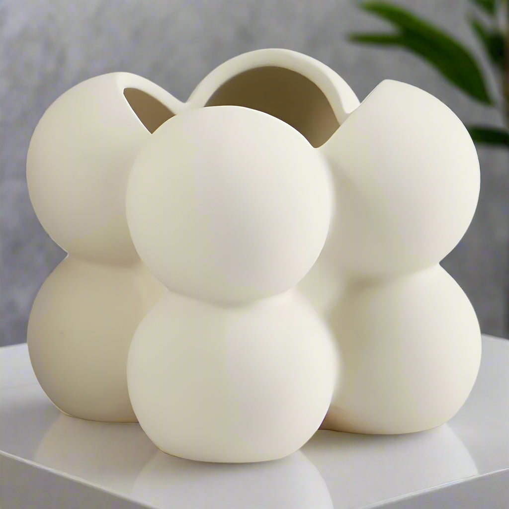 This modern ceramic accent decor piece will bring a unique edge to your space. Its matte seafoam hue and bubble motif create a beautiful, eye-catching piece that can serve in many ways. With its delicate 3.5” size, this little pot is sure to make an exclusive statement. Cleans easily so you can use it in the living room with a small plant, the kitchen to store things, or in the bathroom to hold toiletries.