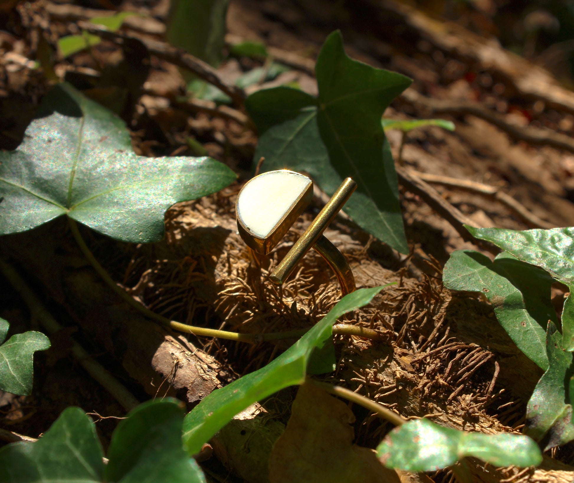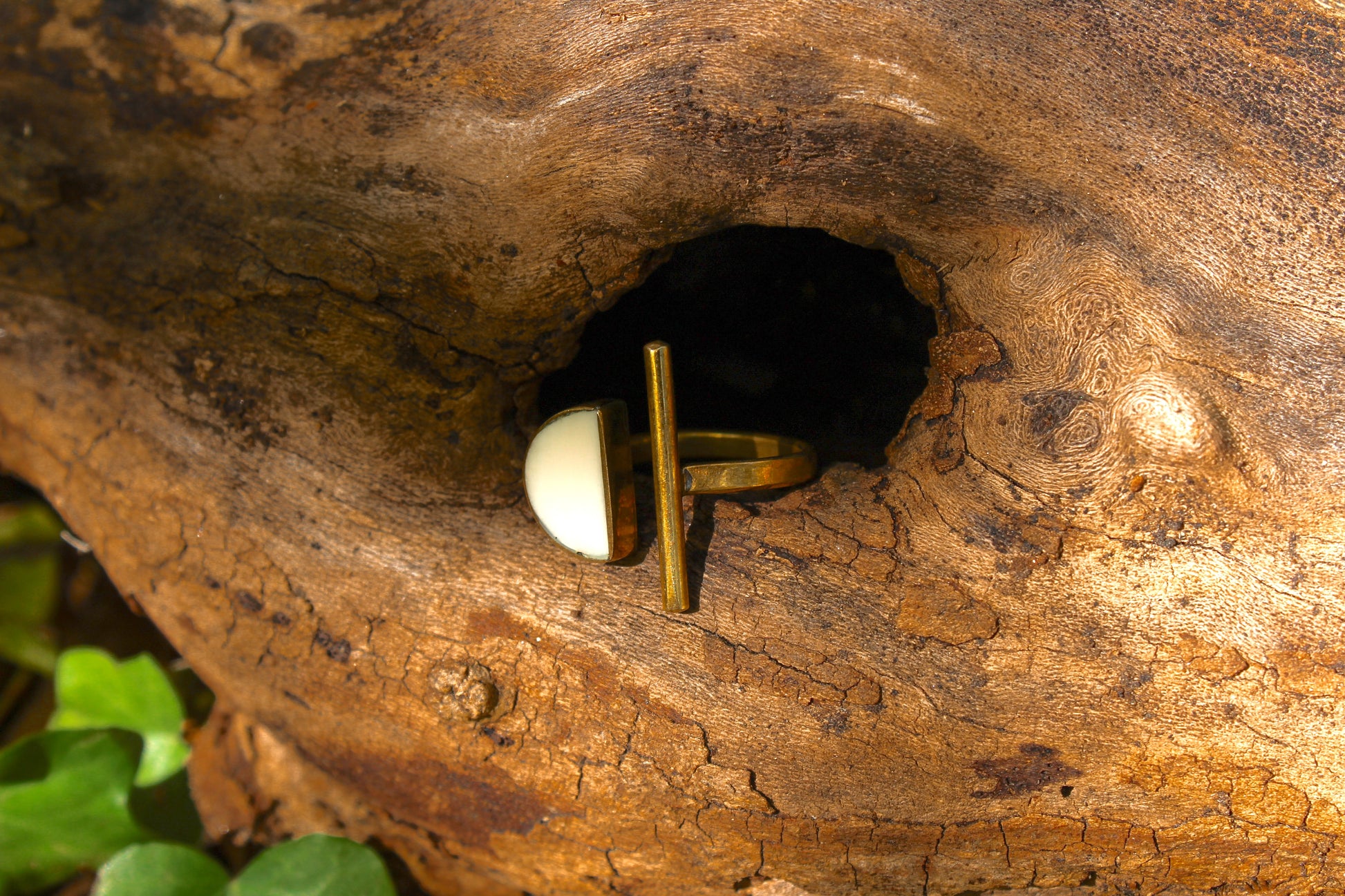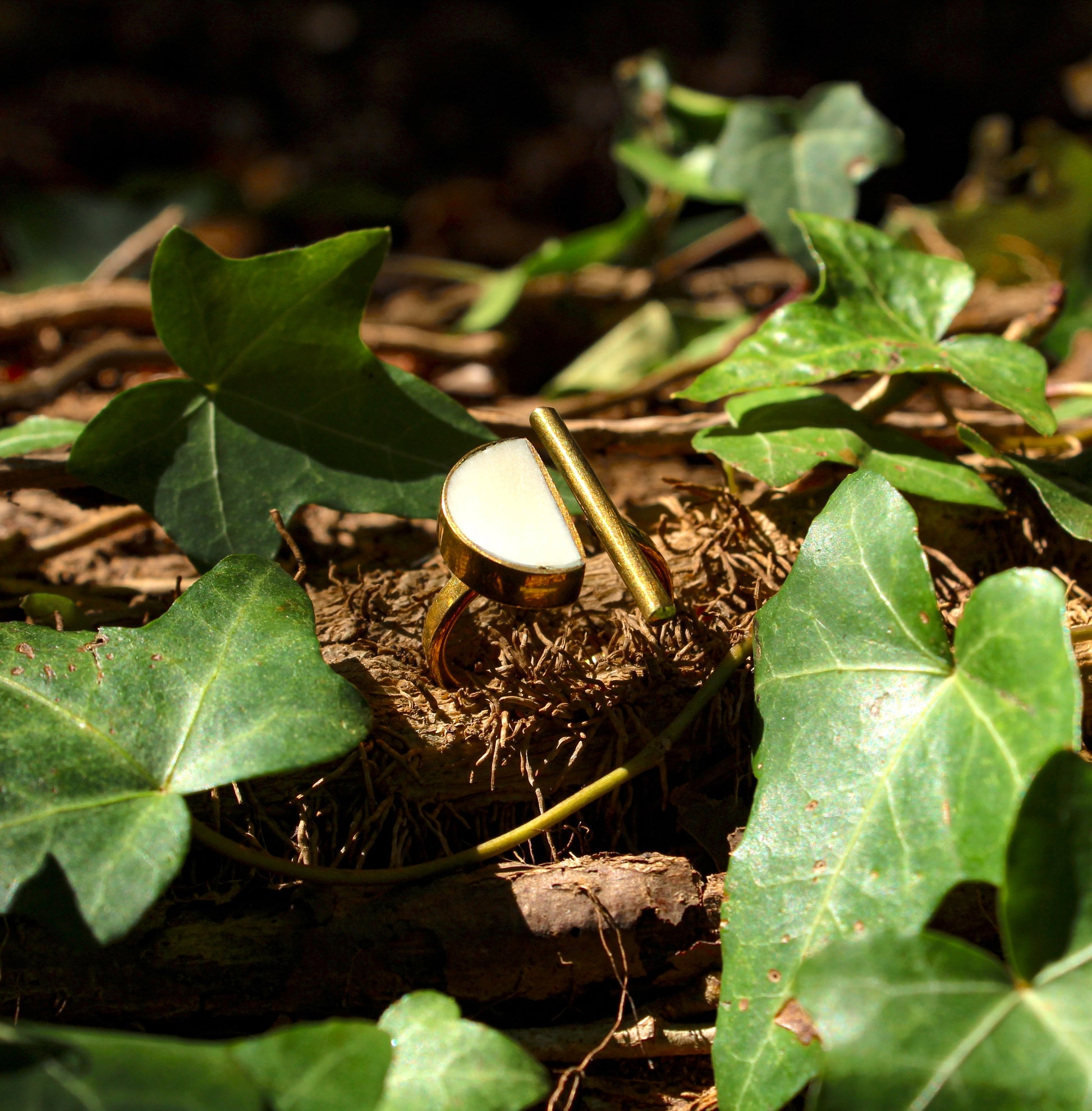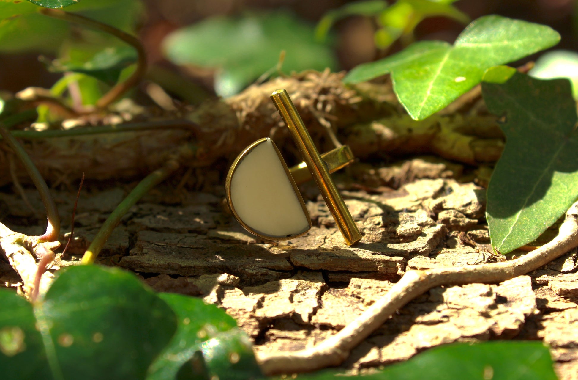 Moonrise Horizon Ring in Brass and Light Cow Horn