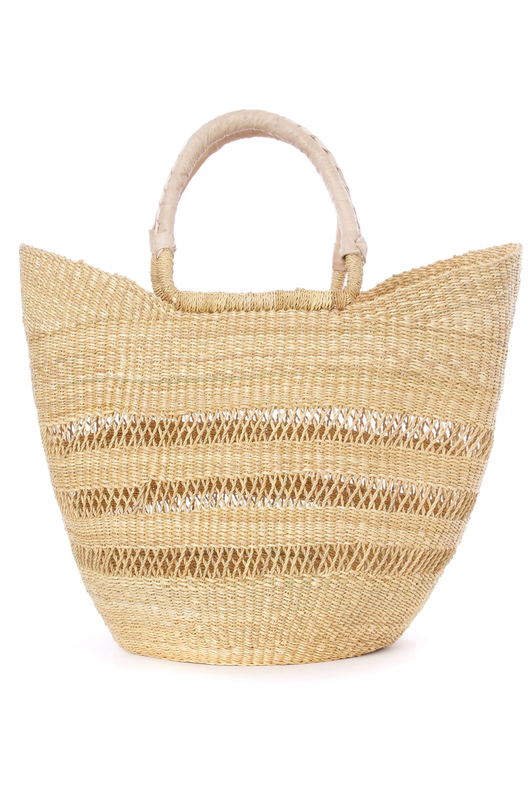 Natural Ghanaian Lacework Wing Shopper with Dye-Free Leather Handles
