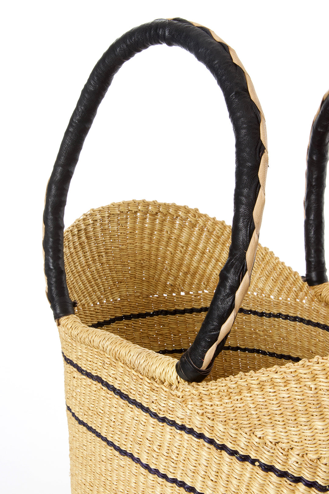 Natural Pinstripe Bolga Shopper with Leather Handles