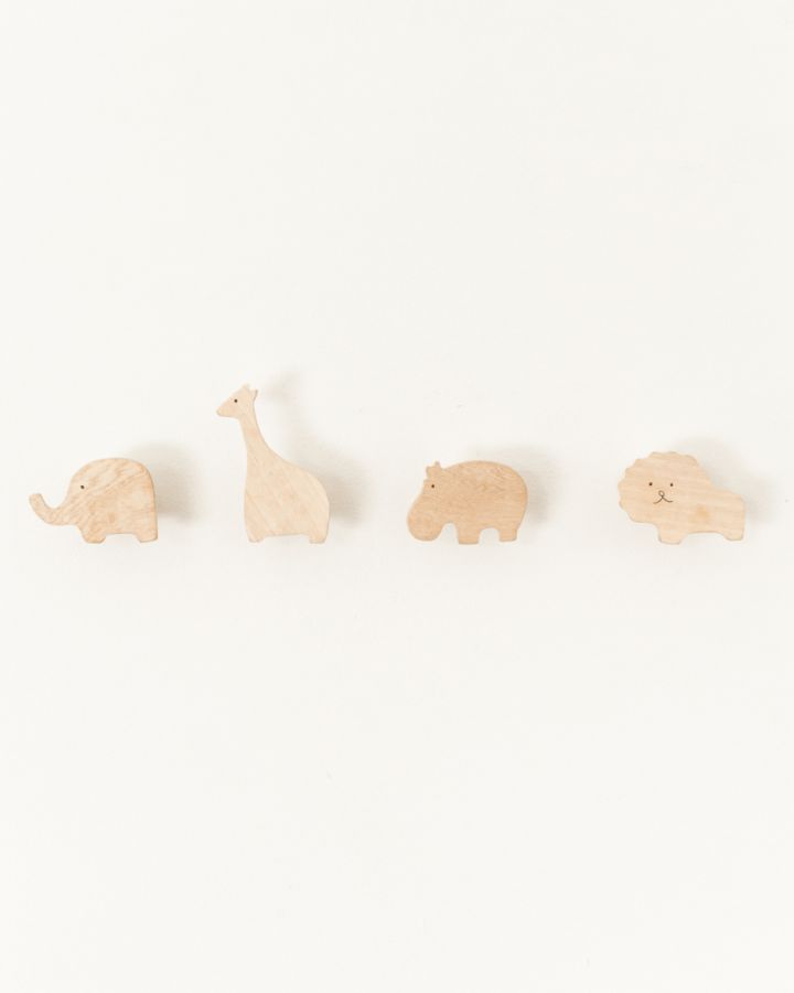 Add some wild whimsy to your nursery or children's décor with this adorable set of wooden wall hooks. These make for a thoughtful baby shower gift as well! Each is hand-carved in Kenya from sustainably sourced jacaranda wood and free from any stains or finishes. This set includes 4 animals as pictured with mounting hardware and installation instructions included.